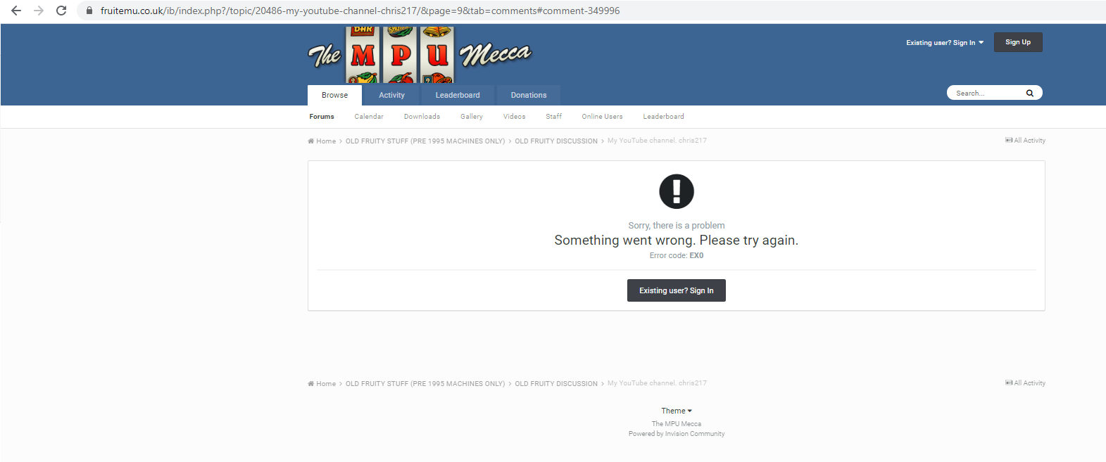 Can anyone help me gain access again to my account that was on the MPU Mecca at https://www.fruitemu.co.uk/?