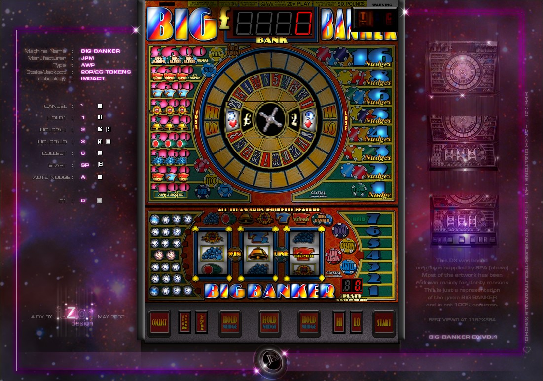 niallquinn Posted March 27, 2018 Report Share Posted March 27, 2018 4 hours ago, wearecity said: Here's another machine, previously not on MFME (going by the downloads on Fruit-Emu) Big Banker by Fuzion. Such a great looking DX and it's coming up to 15 years old!!! There are no issue with the machine functioning, but sadly the hi-lo reel, did not convert well at all. It really needs doing from scratch and hopefully someone might take it on one day. The main numbers that are difficult to make out are 5, which has a queen on the opposite side and the 3 which has the 9 on the opposite side. Apart from the usual additions needed in converting, I've added a coin mech to the layout, which enables coins and tokens to be inputted. Of course if you want to remove them, you can, by going into edit mode and right clicking and deleting. The buttons on the side are still usable for coin input and holds, but no token input available this way. I've hopefully added the correct meter settings, as coins and tokens do register and payout with the relevant noises. . Big_Banker_(JPEMU_Conv).zip 6 Thanks for the conversion. Remind me what the free win is? Or best way to play it again? Cheers, NQ. 1 Link to comment Share on other sites More sharing options...