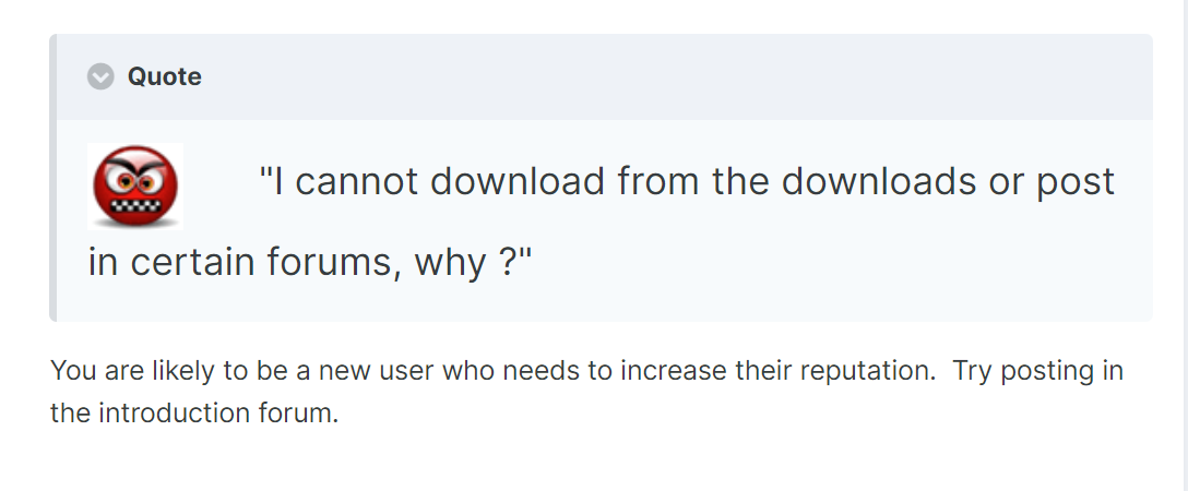 Ze Frog Posted December 9, 2022 Report Share Posted December 9, 2022 On 01/11/2022 at 00:55, Zippy said: 11 posts in near 5 years and you are wondering why it has gone like this. Members here call that leeching! Site donation should be mandatory I think, and possibly MFME player technically a subscription for first 3 year's and then you have licensed copy. I'm only new myself, but I can see how people get pissed off with people coming along, taking and never see any activity again. Maybe a set subscription every 6 months with a discount for those actually contributing to forum activity. Link to comment Share on other sites More sharing options...