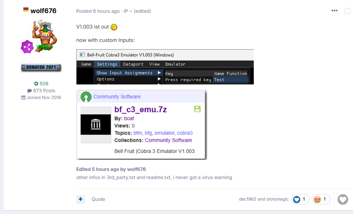 wolf676 Posted October 29 Report Share Posted October 29 (edited) V1.003 ist out now with custom Inputs: Edited October 29 by wolf676 other infos in 3rd_party.txt and readme.txt, i never got a virus warning 1 1 Link to comment Share on other sites More sharing options...
