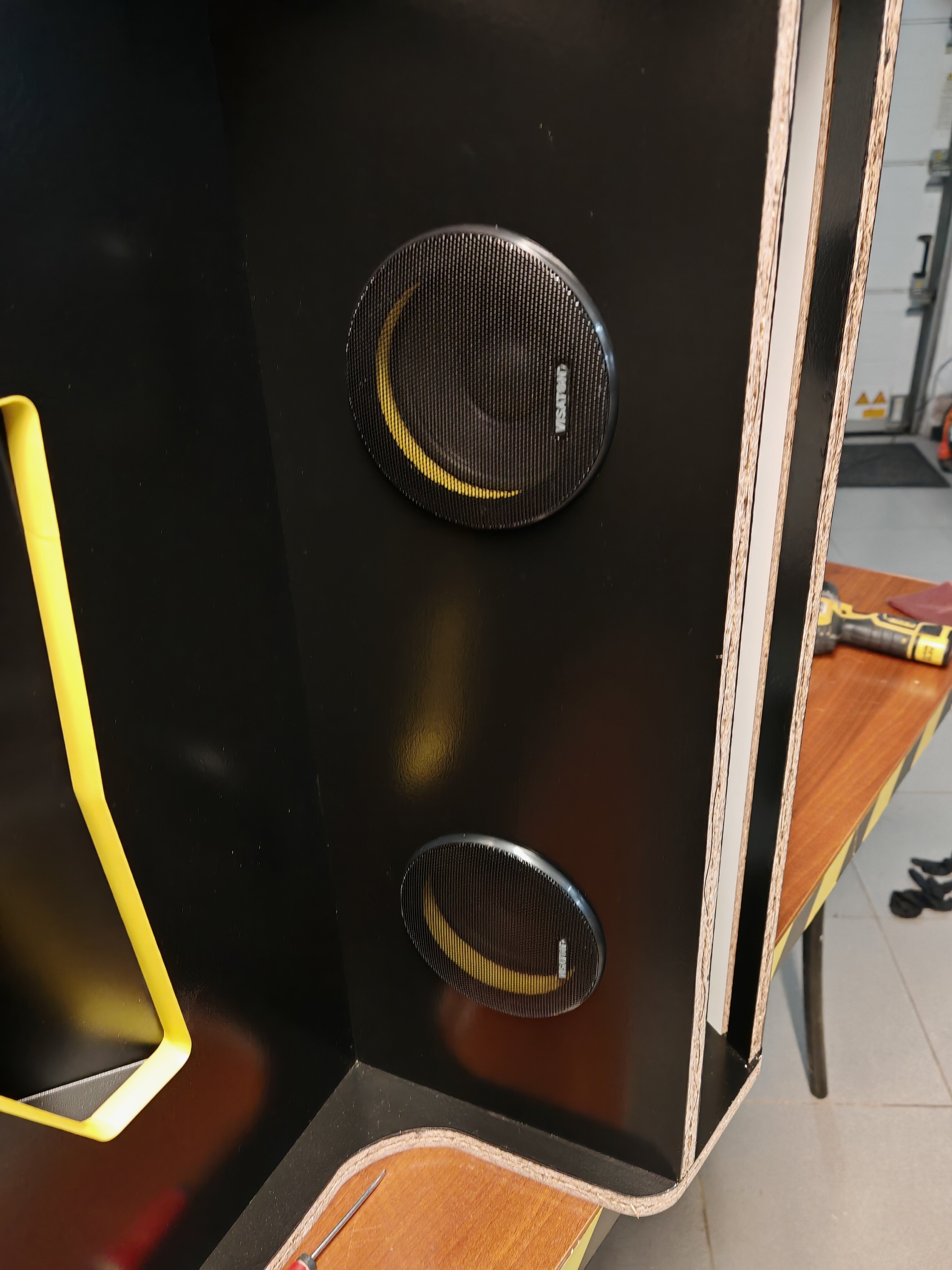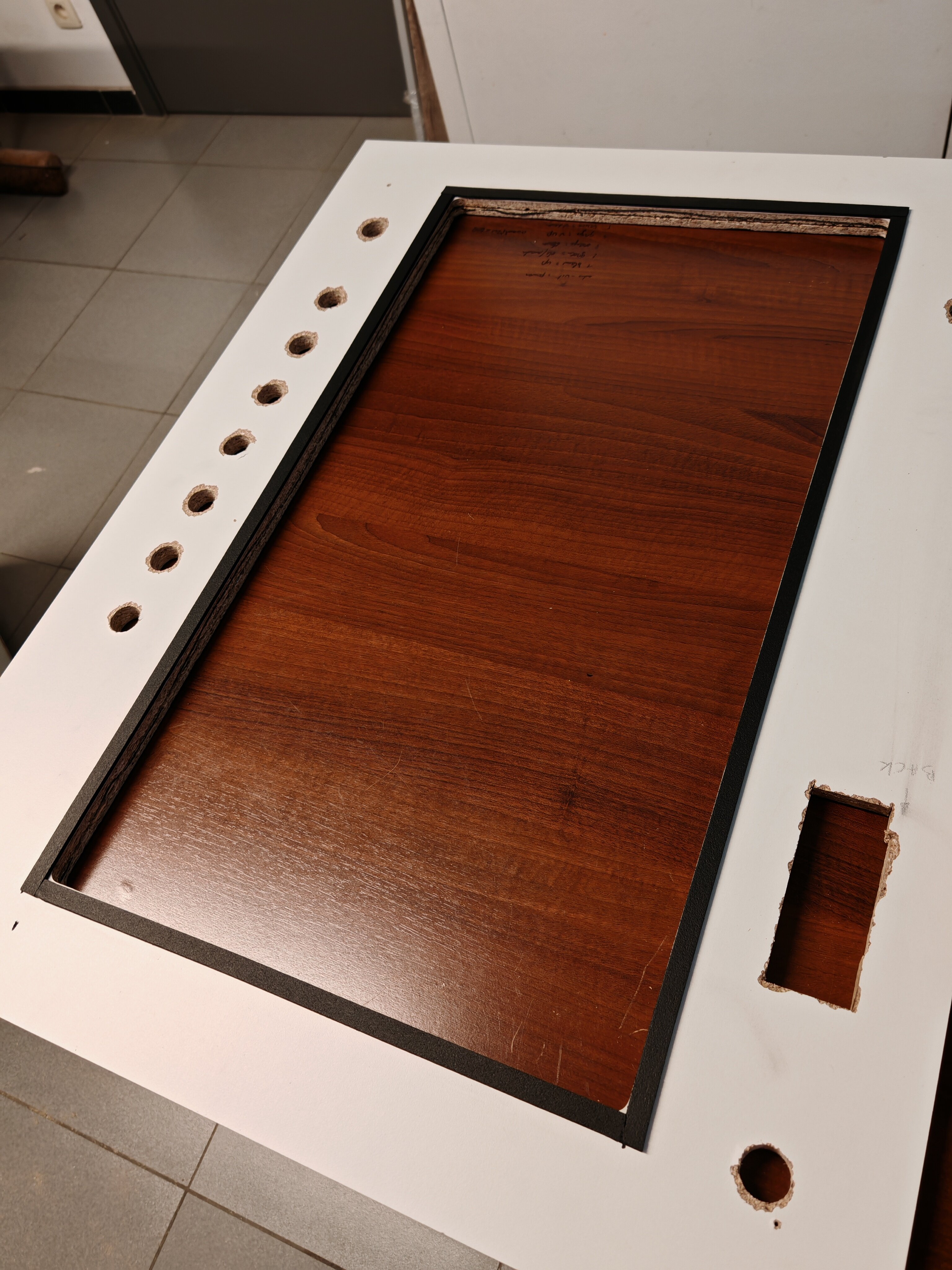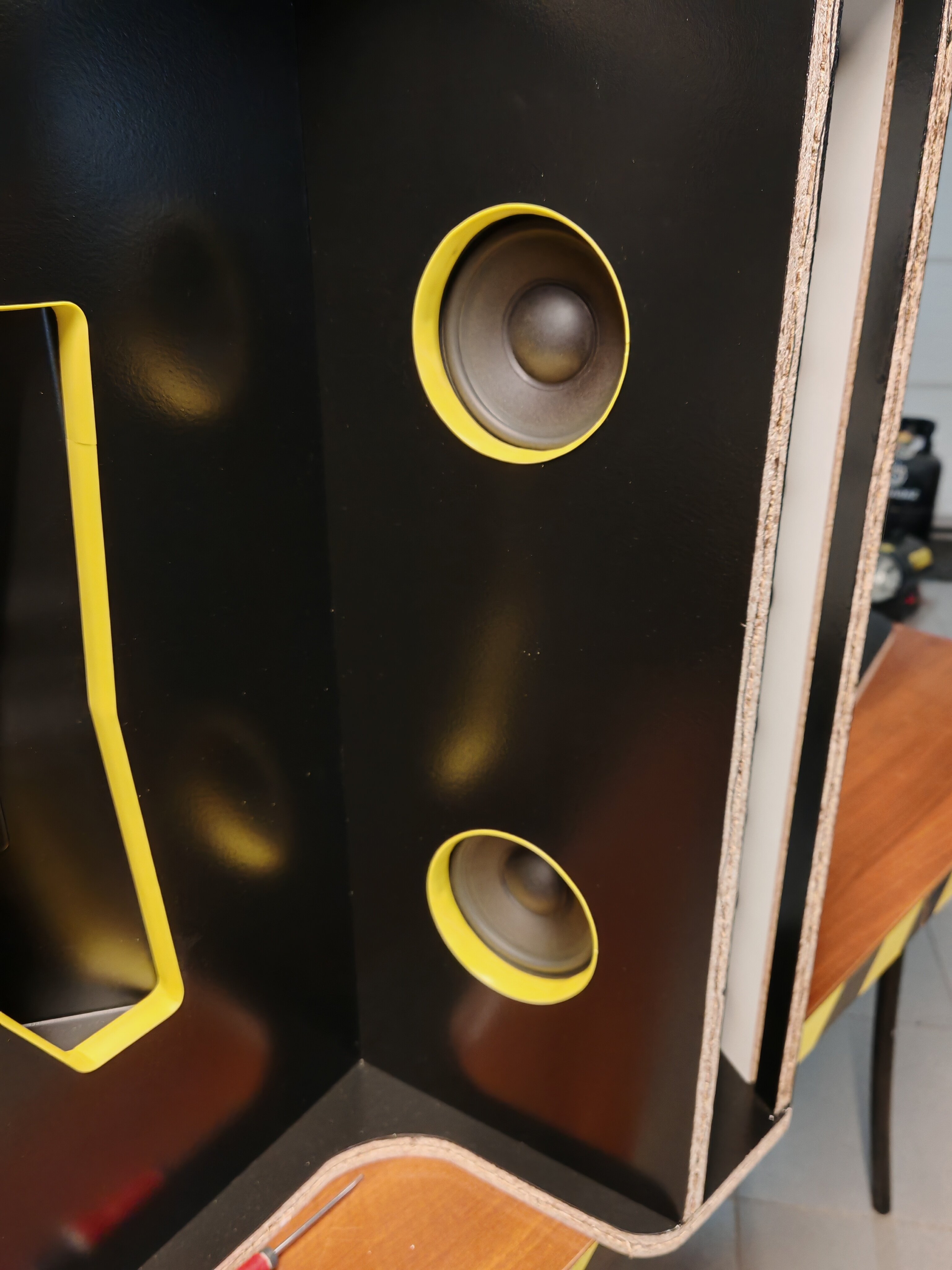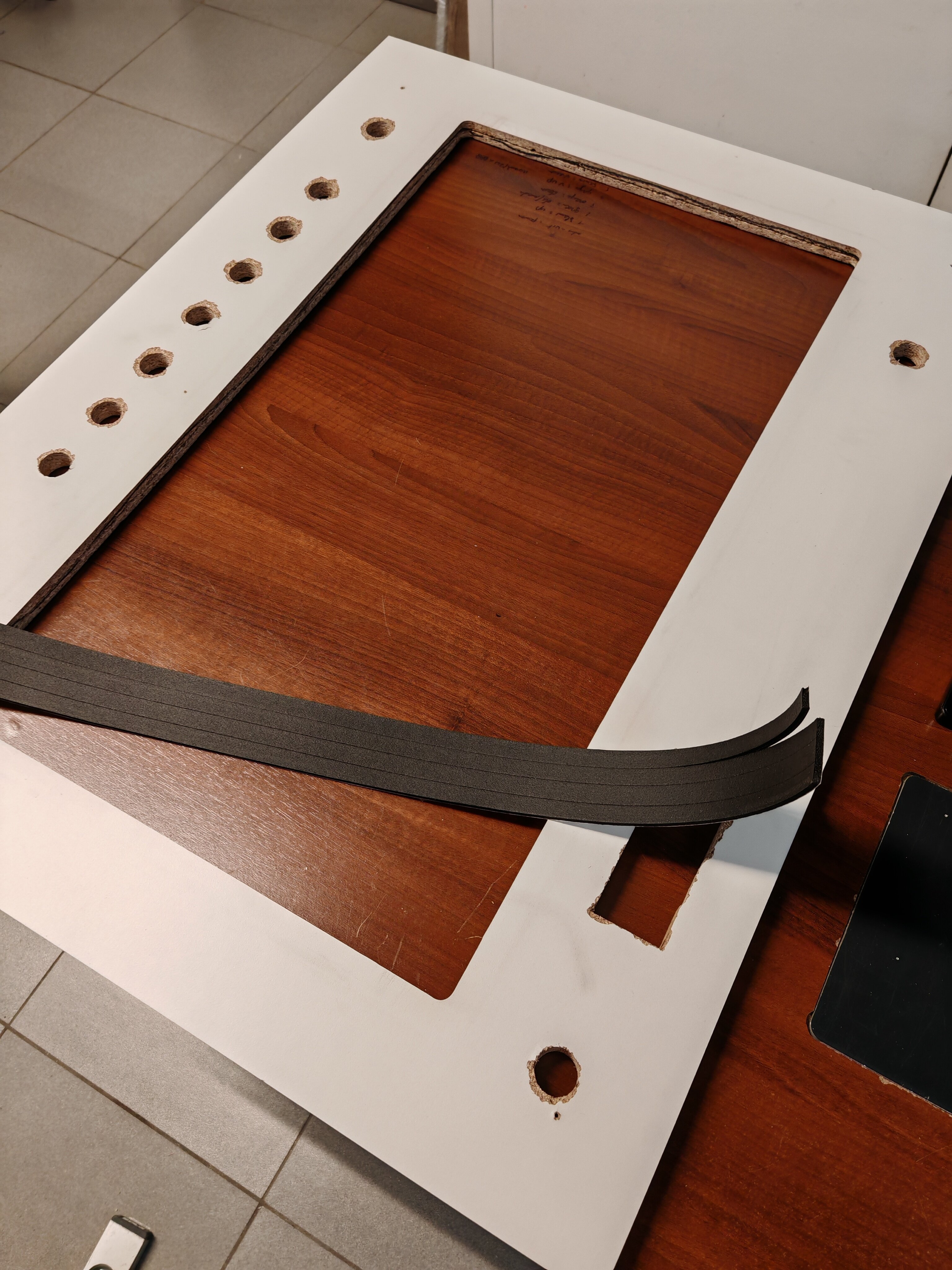 VenumX Posted January 24 Author Report Share Posted January 24 Update : Saturday 24/01/2026 Routing all the slits/grooves for mounting the T-Molding. Example of T-molding: (Yes I know it's a bad piece of wood ) Video of routing the Speaker hole(s): Also did some layers of scratch resistant black paint. Gonna wait till midnight to do the third coat. Pictures are in timed order: 3 Link to comment Share on other sites More sharing options...