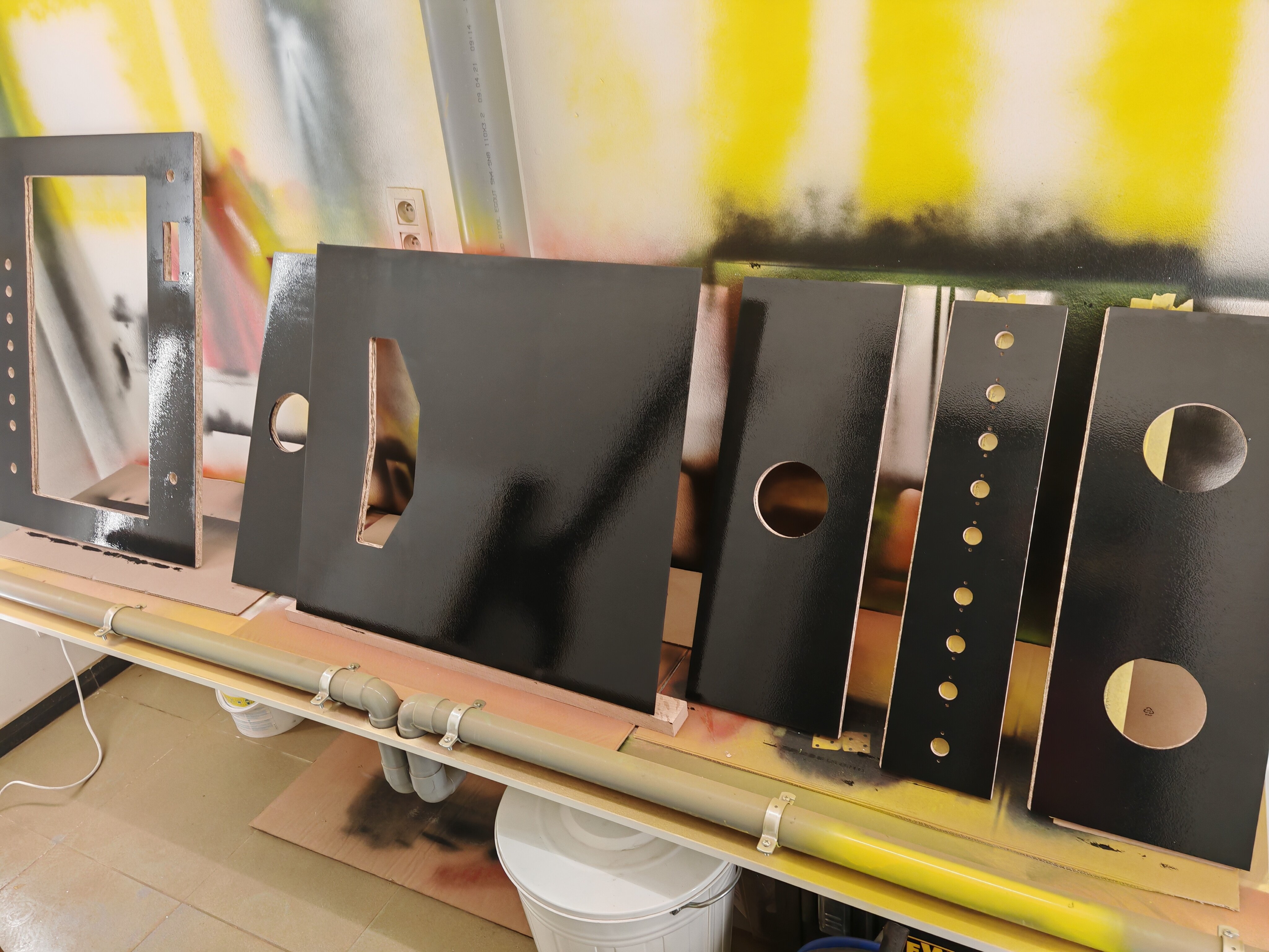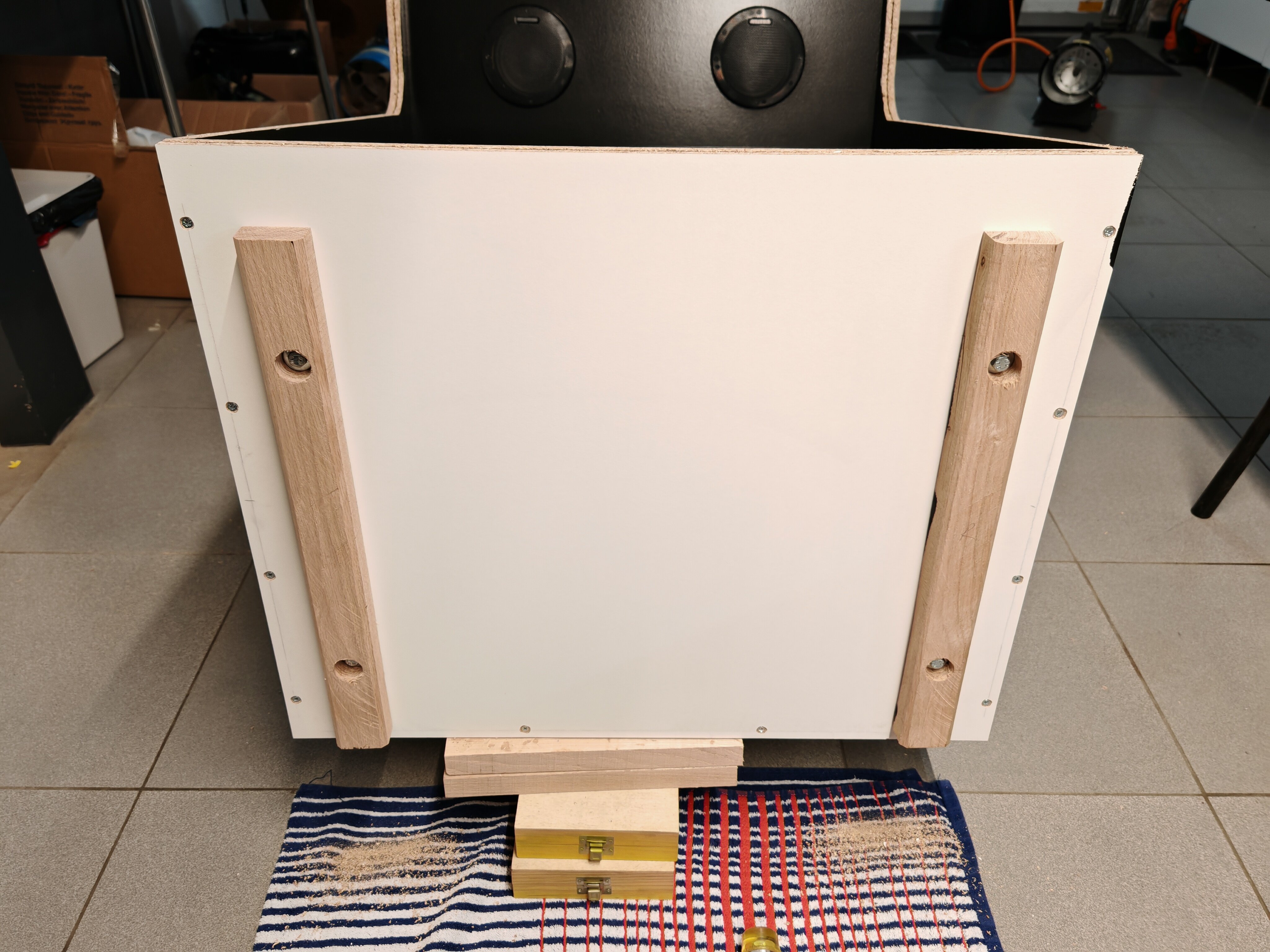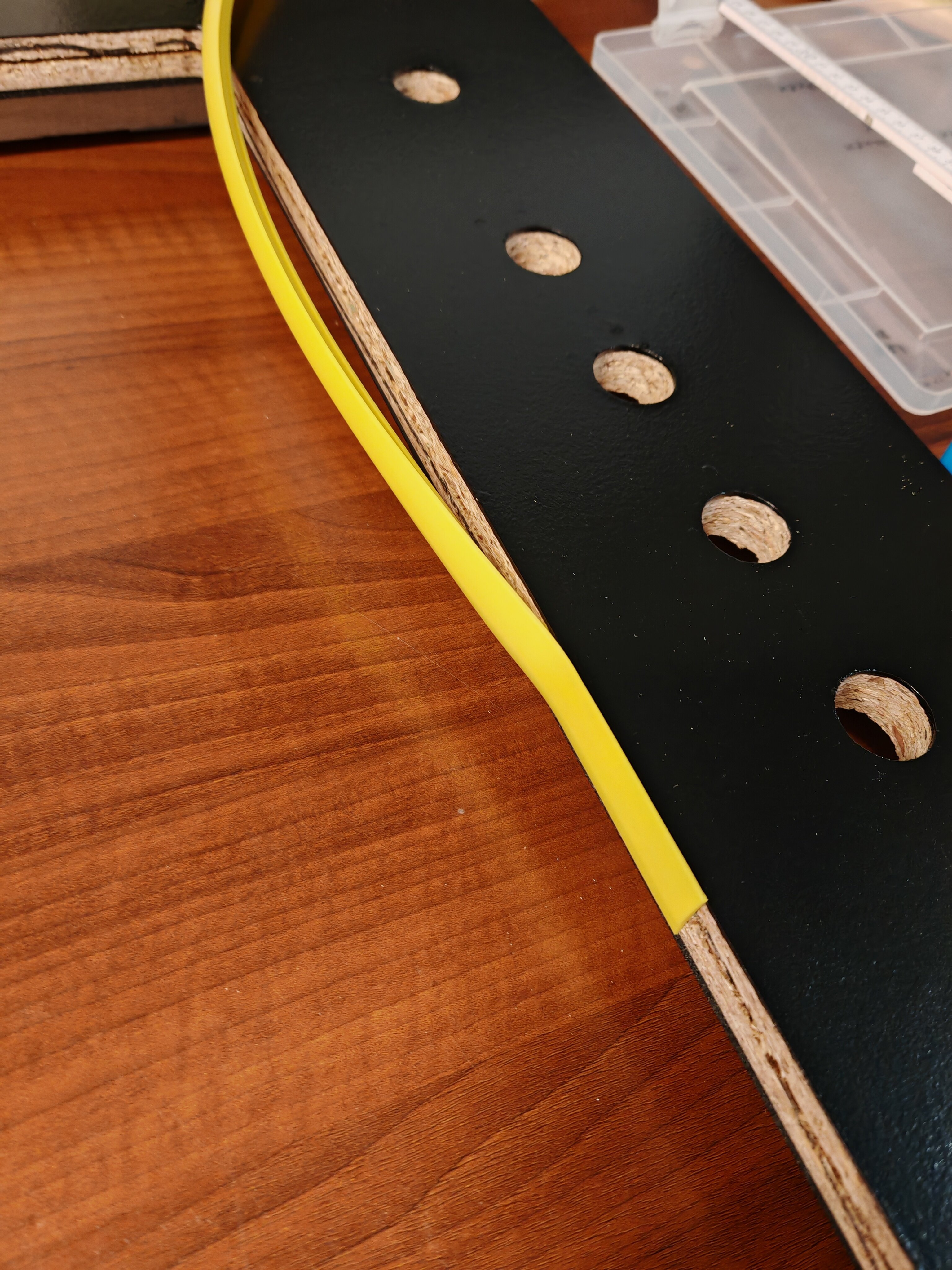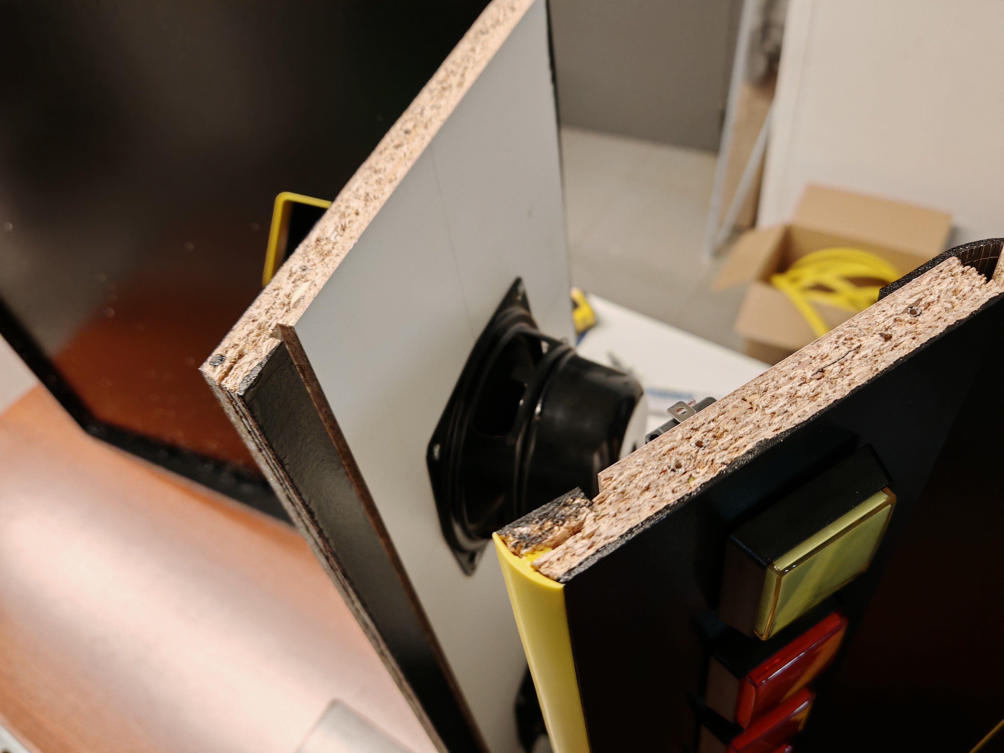 VenumX Posted January 24 Author Report Share Posted January 24 Update : Saturday 24/01/2026 Routing all the slits/grooves for mounting the T-Molding. Example of T-molding: (Yes I know it's a bad piece of wood ) Video of routing the Speaker hole(s): Also did some layers of scratch resistant black paint. Gonna wait till midnight to do the third coat. Pictures are in timed order: 3 Link to comment Share on other sites More sharing options...