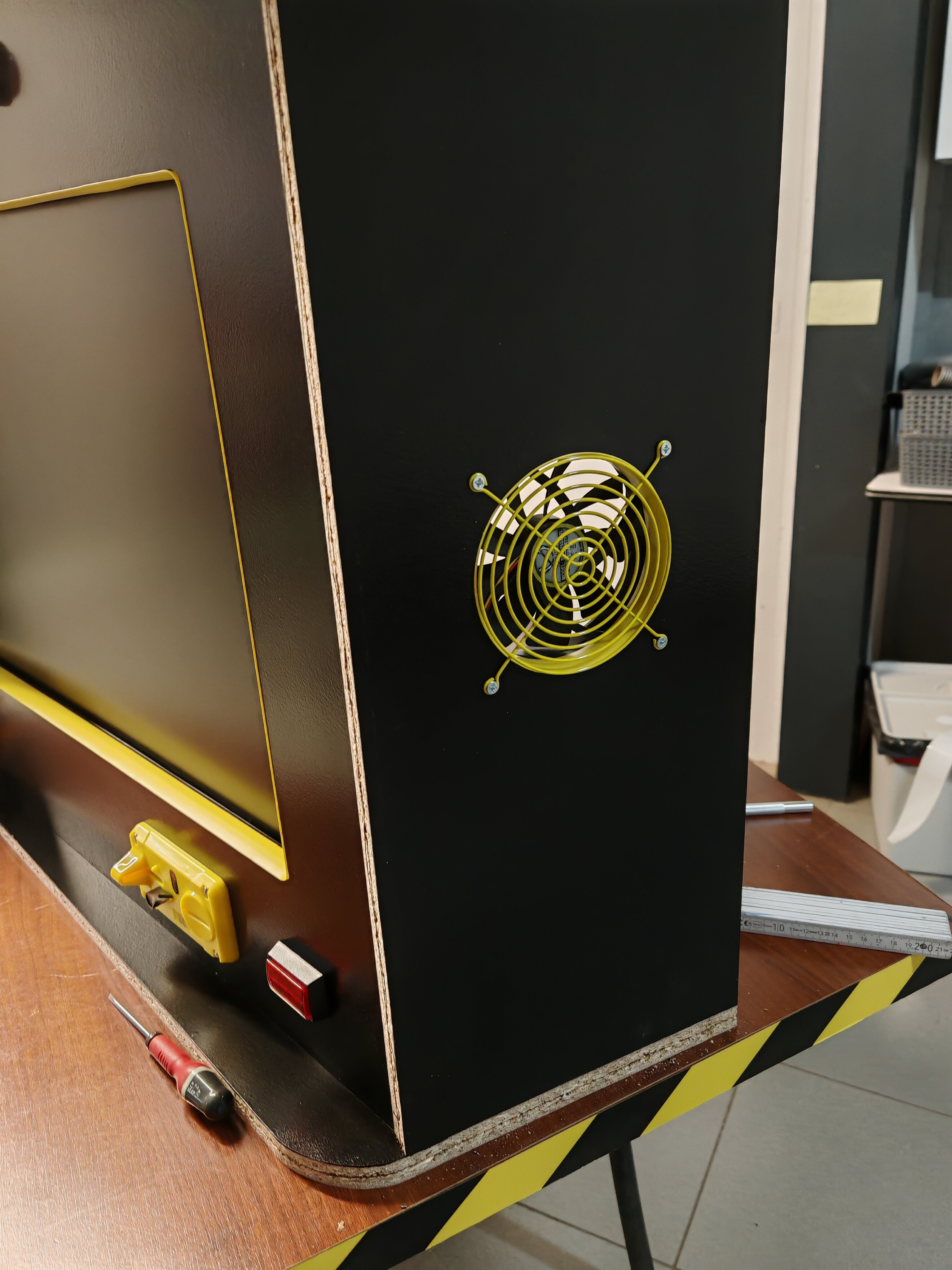 VenumX Posted January 25 Author Report Share Posted January 25 Update : Sunday 25/01/2026 Assembling the unit , measuring , pre drilling , screwing..... All the things that make a man feel good ..... And beer!! Also mounted the monitor inside the case + applying some yellow T-molding I had lying around. (Have to order some more. I forgot to paint the backdoor! Too much beer yesterday I guess.... Hope you guys like it, I'm hitting the couch for today.... Pictures are in timed order. 3 3 Link to comment Share on other sites More sharing options...