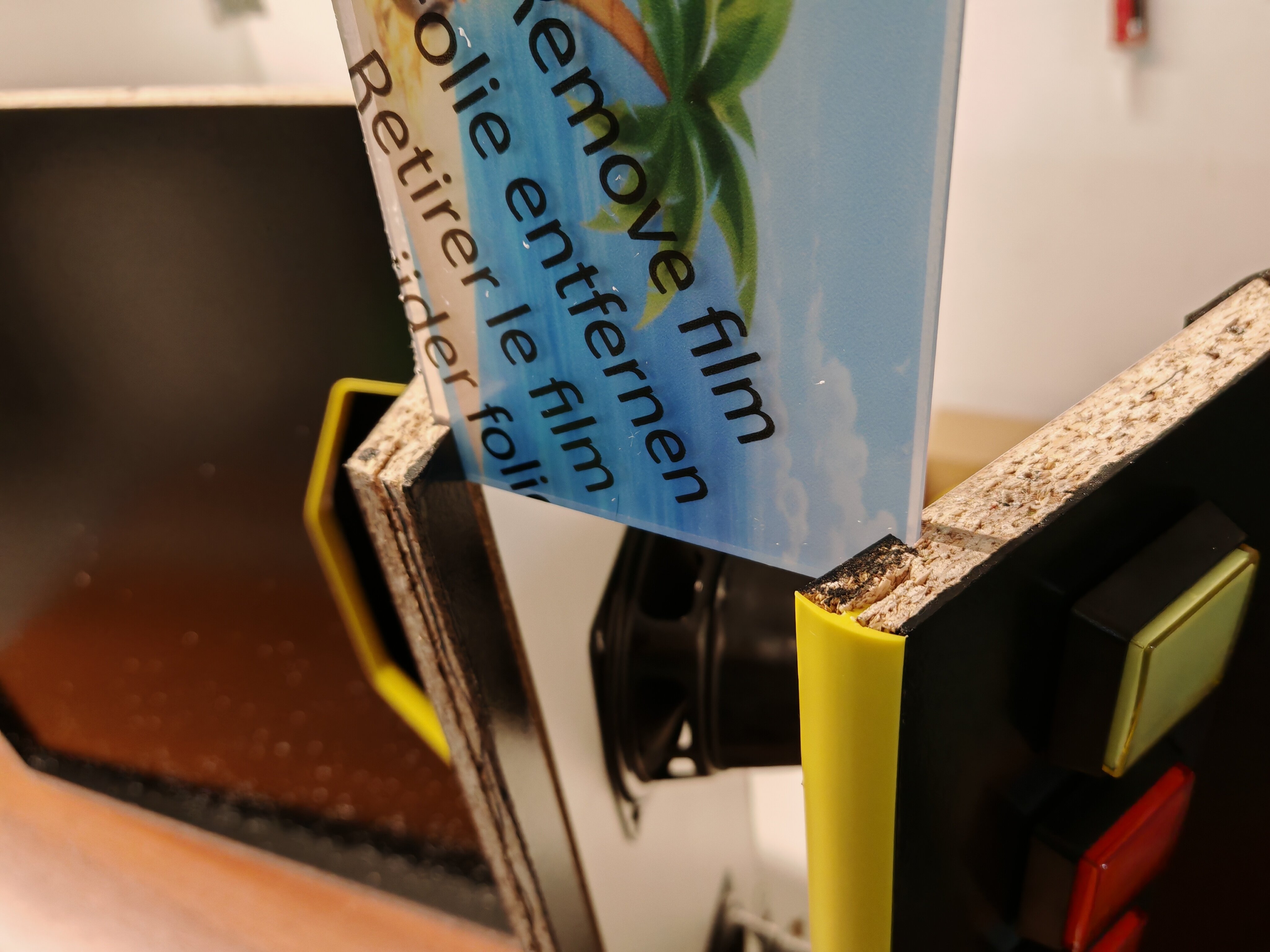 VenumX Posted February 2 Author Report Share Posted February 2 (edited) Update 02/02/2026 Received my package today. The marquee arrived (plexiglass) I hate to adjust it a little bit with my router and a special plexi bit , also i modified the edges to make it slide better into the grooves I routed. It fits perfectly! Testing the LEDs that will be used to light up the marquee,.... Since the LEDs are too close to the plexi (because of the buttons and speakers) I have chosen to light the plexi from the top , that way you don't look directly into the LEDs + it looks like there is a fluorescent tube installed behind it. Kinda old-school. Now the desertislandfruits marquee is sealed in forever! Now it's waiting for the stickers to arrive Enjoy! Edited February 2 by VenumX Typo's lol 3 1 Link to comment Share on other sites More sharing options...